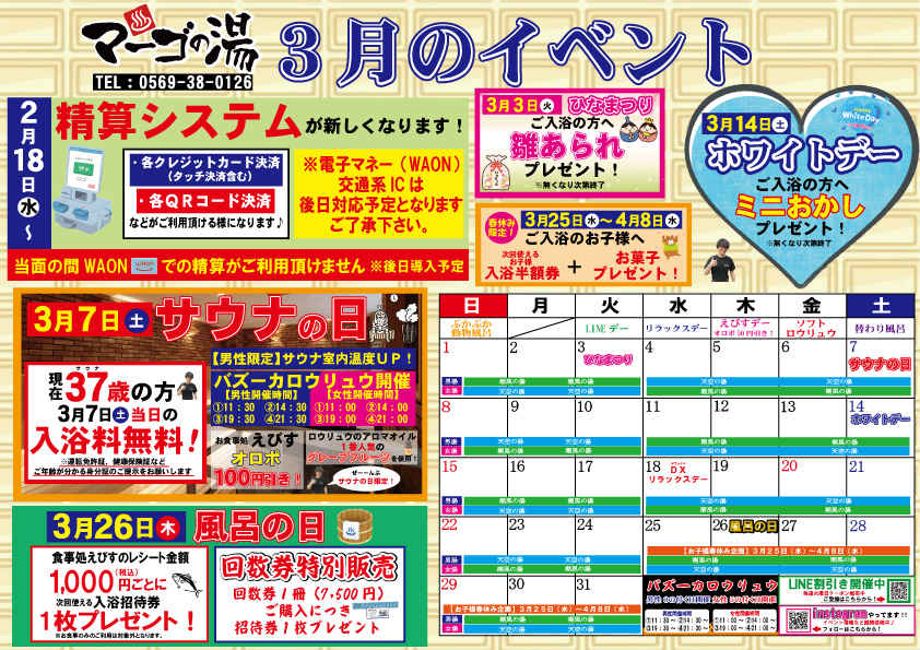 3月イベント情報&浴室入れ替えカレンダー